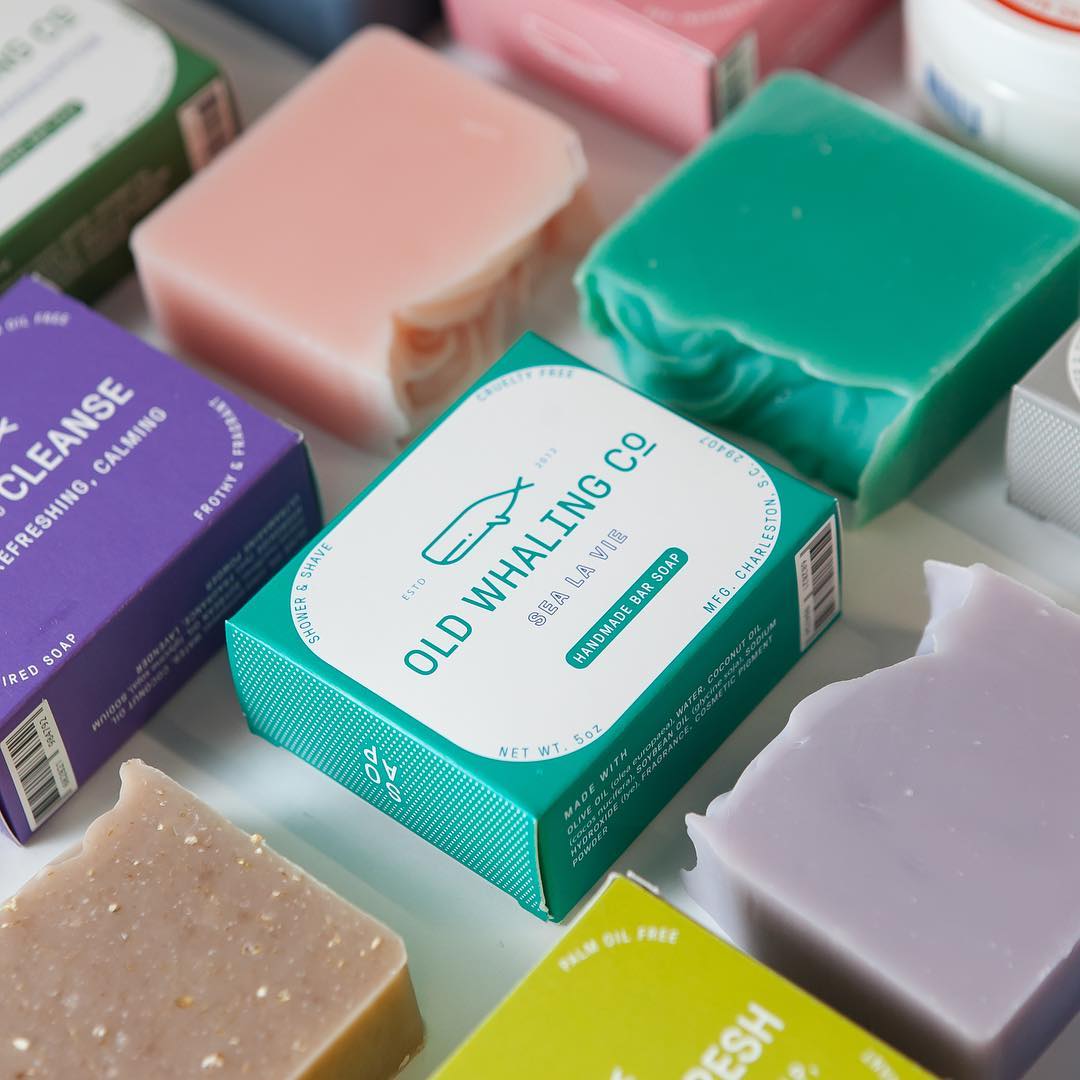 Our soap has a gentle, creamy lather that is great for shaving, bathing, hands and faces. It is cleansing, moisturizing and lovely to use from hair to toes! Our handcrafted soap bars are large, weighing around 5oz each.